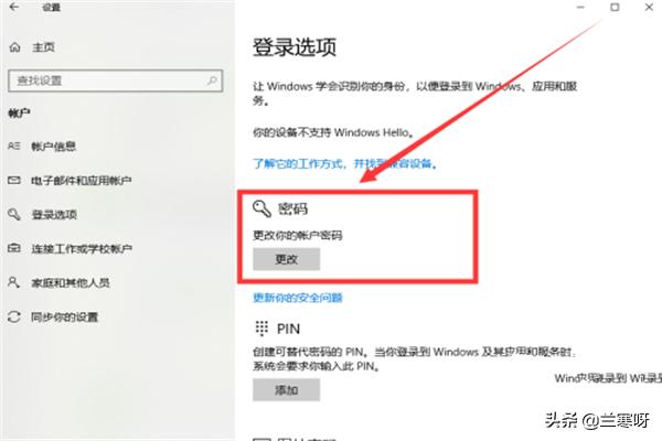6.第四步,我们还需要给我们的电脑设置一个开机密码。小伙伴们可以通过【设置】>【账户】>【登录选项】进行设置。