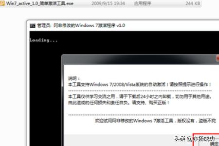 3、运行激活工具。首先看到工具的版权声明,这里是感谢工具制作人员哈。然后点击“确定”。