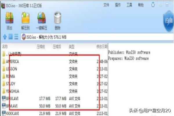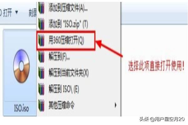第九步,也可以使用360压缩进行直接性的打开使用,即选择ISO文件,点击鼠标的右键,在弹出的菜单中选择“用360压缩打开”。