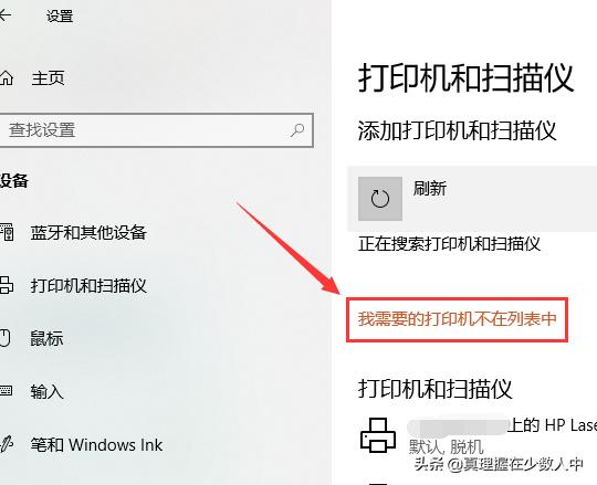 5、点击橙色字体的“我需要的打印机不在列表中”;