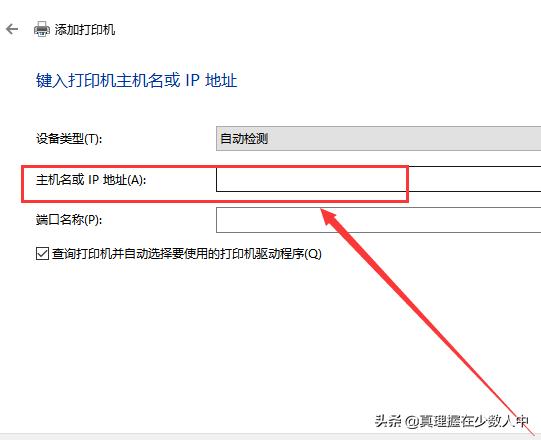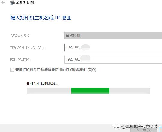 7、然后进入输入共享打印机的ip地址页面,输入主机ip地址之后点击下一步;