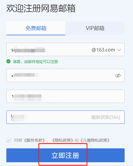 5输入收到的验证码,点击立即注册,就可以完成注册了。