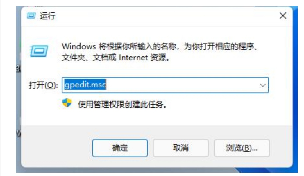 打开后,在其中输入“gpedit.msc”回车确定打开组策略。