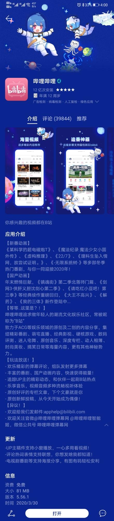 4、哔哩哔哩,这软件主要是用来看看视频,看看番剧,因为基本没什么广告。