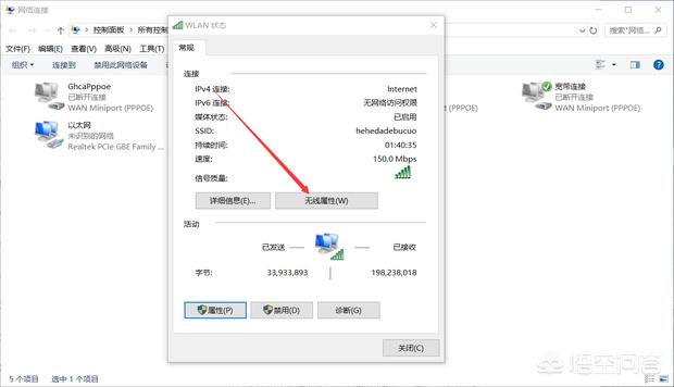 3.打开后找到自己链接的无线,单击打开无线状态面板,然后点击无线属性。