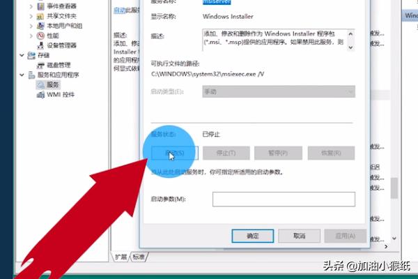 4、在服务状态下面点击启动按钮,然后重新安装即可。